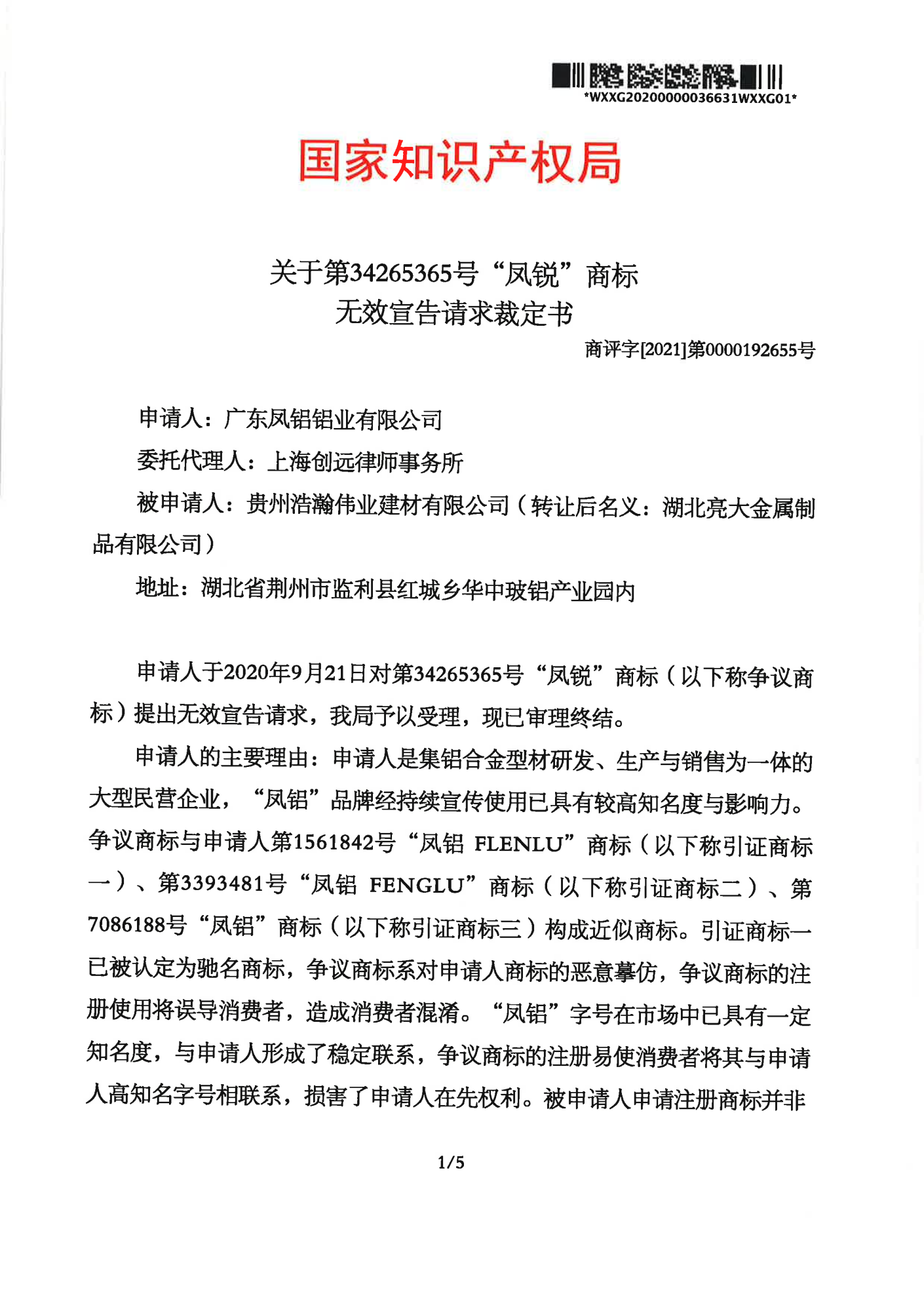 巴中辉知队 | 国家知识产权局:“凤锐”商标无效