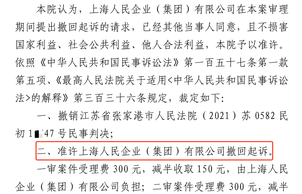 巴中胜诉佳讯 | 人民企业系列案苏州六案上海人民公司撤诉
